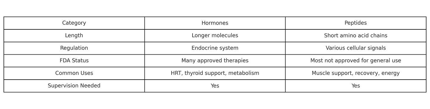 At TKO Vitality, we frequently receive questions about peptides and hormones. This educational content explains the differences between these therapies to help you have informed discussions with your healthcare provider.